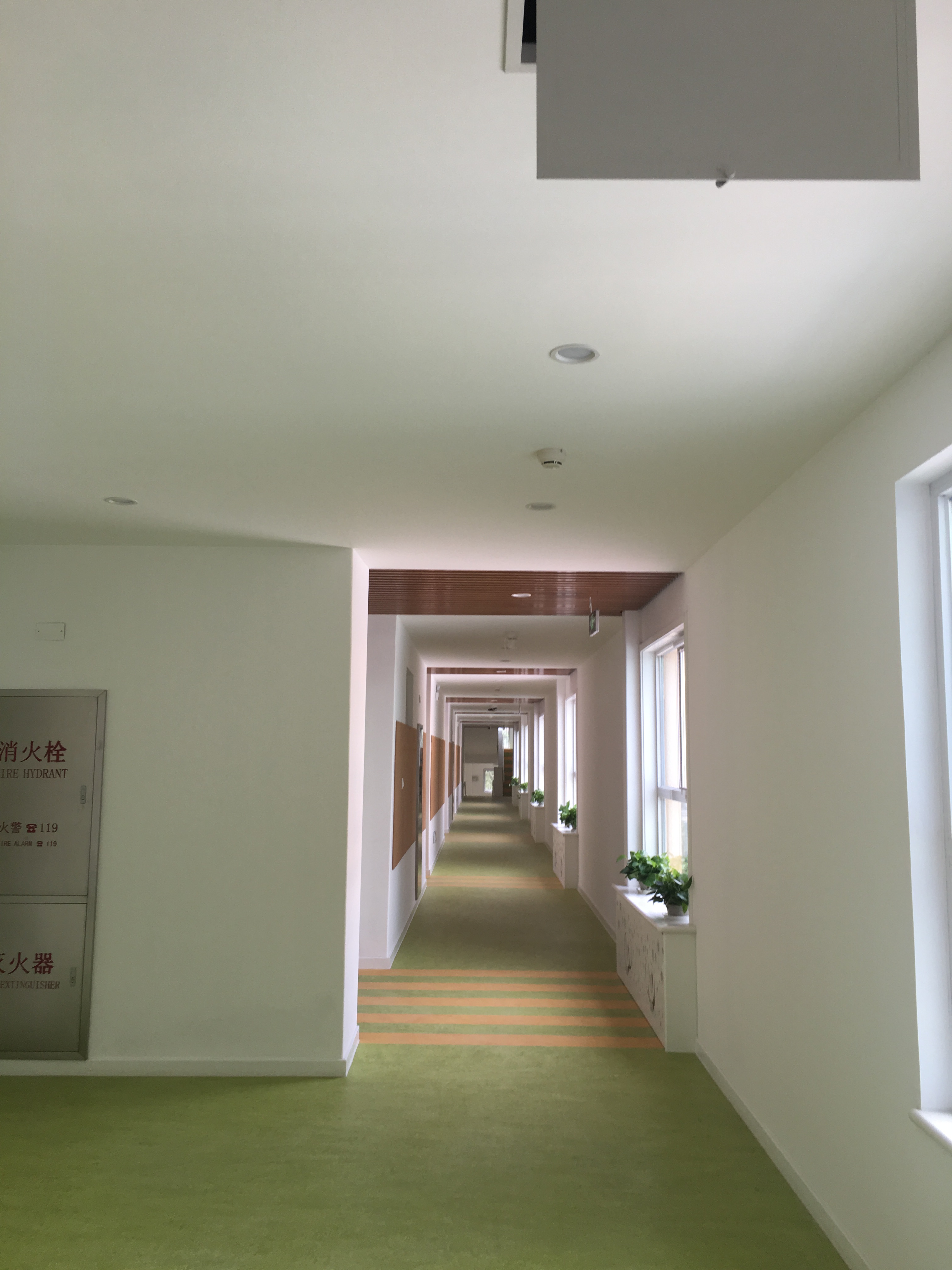 該項(xiàng)目配置了一臺(tái)DB0808作為核心音頻處理器,并采用了有源吸頂揚(yáng)聲器平均分布的擴(kuò)聲方式。教室主要以語(yǔ)言類擴(kuò)聲為主要形式,該走廊分布較廣,因此需要有源音箱有較好的覆蓋,這樣可以保證聲音覆蓋整個(gè)校園的聽音區(qū)。